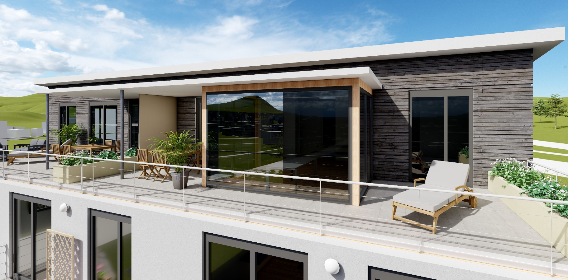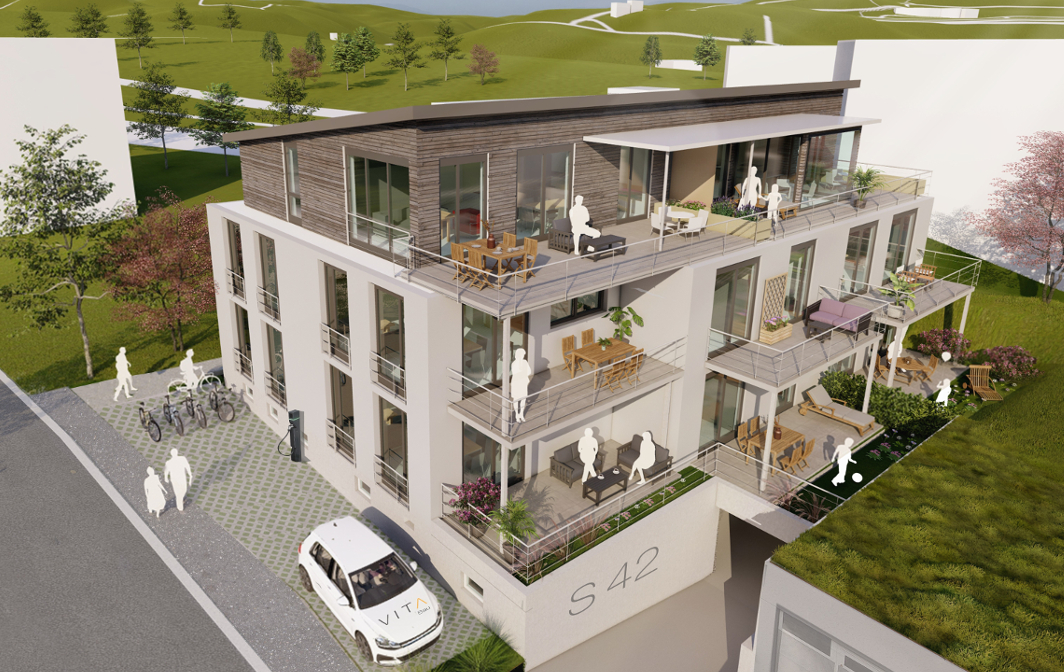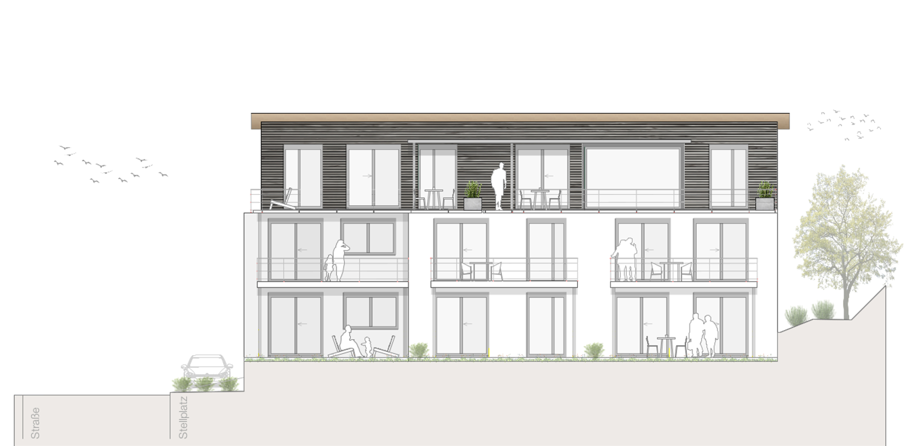 Die Ausrichtung aller Wohnungen nach Süden & Westen garantiert Ihnen lichtdurchflutete Räume sowie eine tolle Aussicht in den Hegau. Eine abgesetzte Architektur mit moderner Formensprache garantiert dabei ausreichend Privatsphäre.