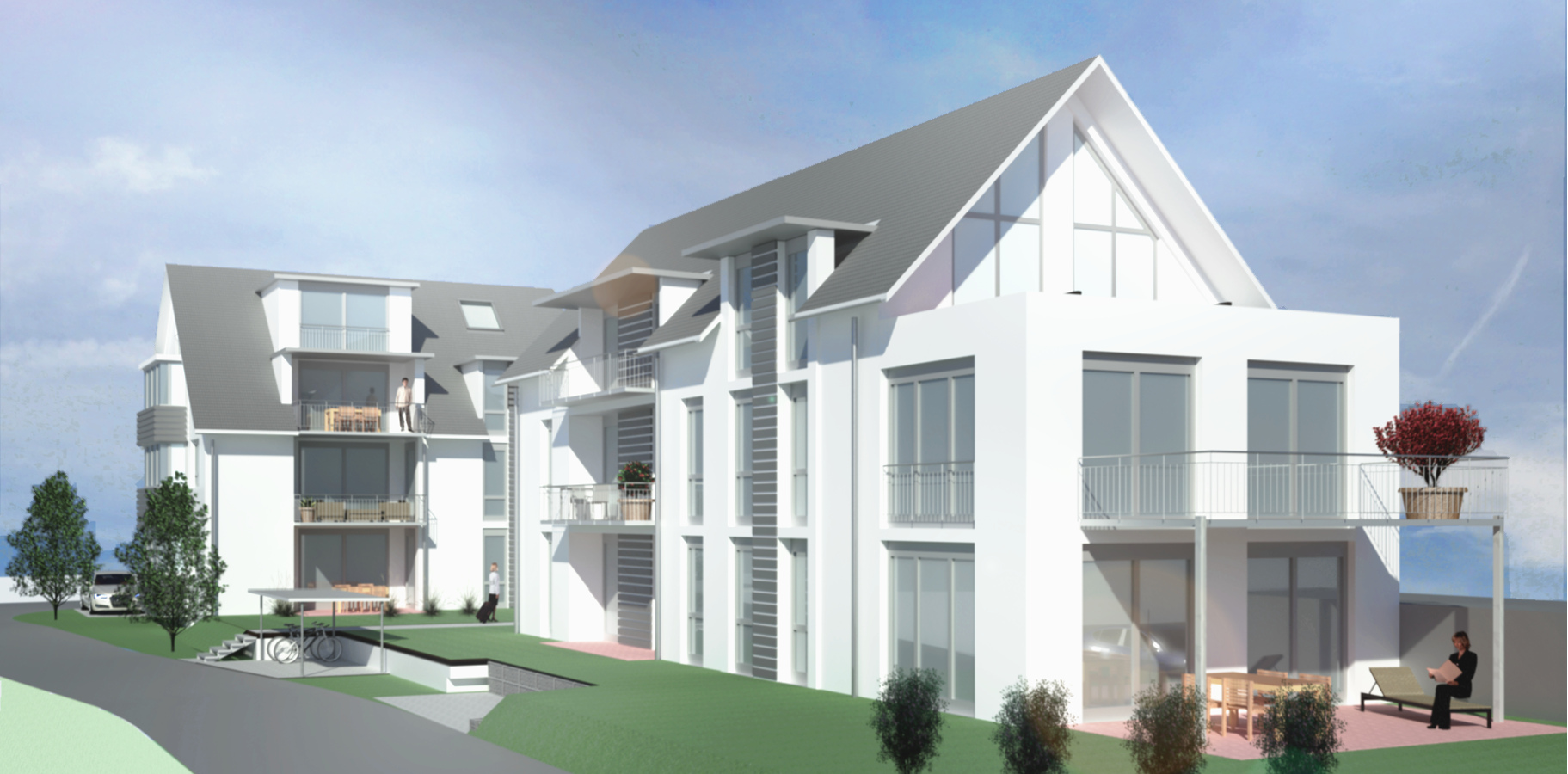 In unmittelbarer Nähe zum Bodensee entstehen hier insgesamt 6 Eigentumswohnungen in zwei Häusern.