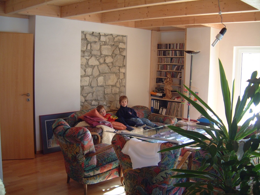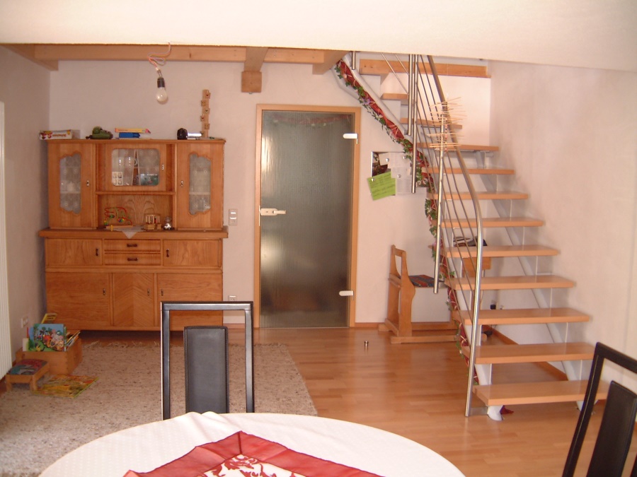 In das bestehende Ökonomiegebäude wurde eine neue Wohneinheit über 3 Geschosse eingebaut. Im DG offener Grundriss mit Galerie im Esszimmerbereich. Bestehendes altes Fachwerk, Balken und Kalksteinmauerwerk wurden liebevoll erhalten und saniert.