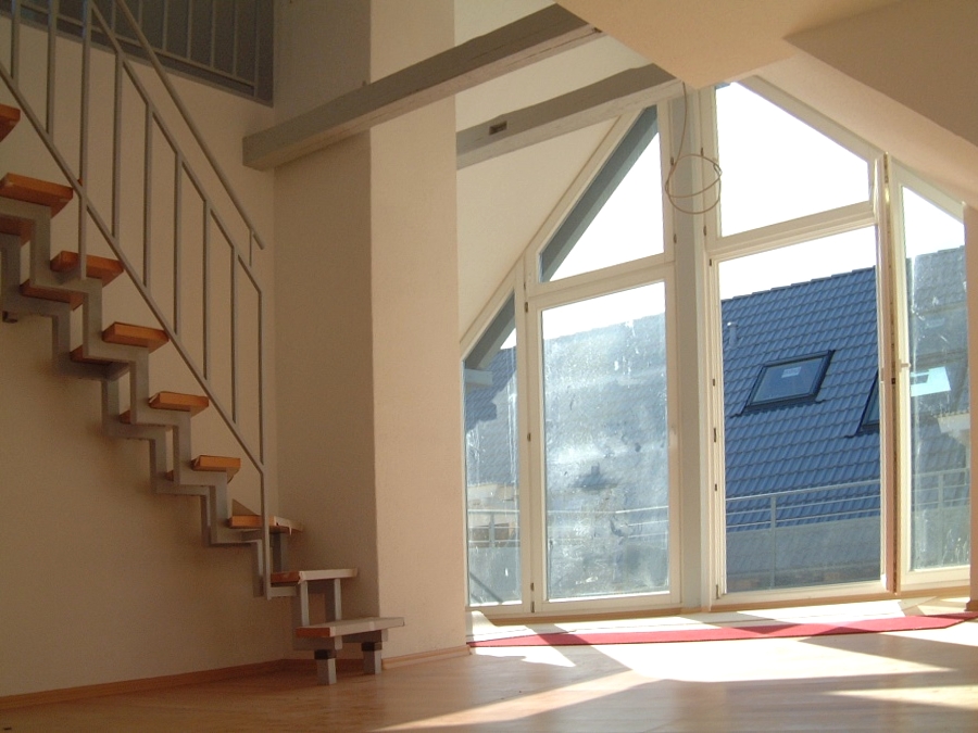 In einer Villa wurde das Dachgeschoss ausgebaut. Es gab eine schnuckelige Dachgeschosswohnung mit kleiner Galerie. Eine nach Westen offen verglaste Gaupe